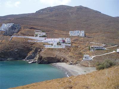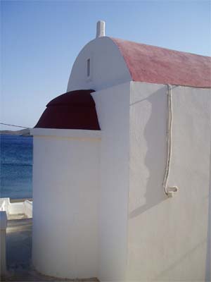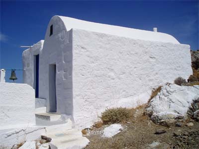 Ag. Konstantinos church is perched on the hill just above the beach.