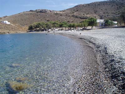 Ag. Konstantinos is pebbly with very clear water and quite peaceful.