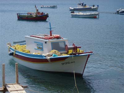 Many of the beaches have the sound of goat bells tinkling in the background and some of the quieter ones have a great array of bird life. During our stay we spotted jackdaws, cormorants, birds of prey, sparrows, small wrens, and several we’ve yet to identify one of which had a magnificent lemon yellow breast (on the islet of Kounoupa). Interestingly Astypalaia is one of the only Greek islands to be devoid of snakes, and we didn’t see all that many lizards. There are meant to be a few hares up in the hills. The sea is generally very clear and provides excellent opportunities for fish-watching, either with a snorkel, standing chest-deep with a chunk of bread, or sitting at the end of one of the little jetties. We saw large schools of inquisitive small fry, the occasional larger dogfish, flat fish, bottom-feeding catfish, the multi-coloured glory of the ornate wrasse, sea caterpillars, anemones, starfish, squid, hermit crabs. . .