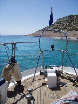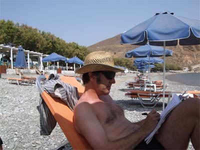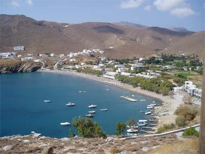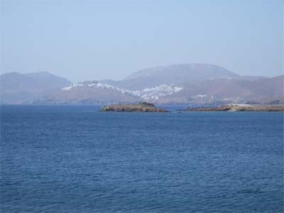 A few yachts come and go, and the beach gives another aspect on the stunning Chora to the east, then across the bay to Ag. Konstantinos in the south and a scattering of islets on the horizon.