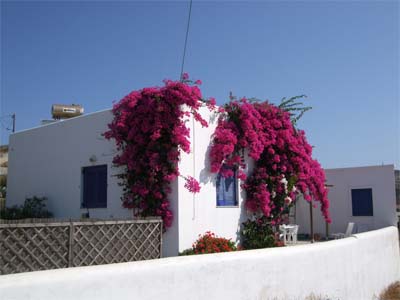 Head south from Chora along the main road to Livadi and you pass Iliana on your right selling a variety of local preserved fruits, cakes and tyripitta, with another large bakers and pizza shop a little before that on the left. There are some good views and interesting buildings en route, and a garden with a tiny chapel built in it.