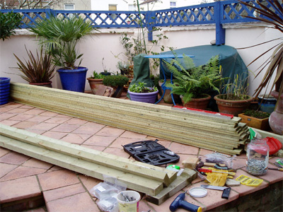 I ordered planned how I was going to go about it and then worked out how much timber I'd need. I piled the dry graded treated timber up on the patio, stood back and wondered if I'd ordered too much for while – but it all got used according to the plan.