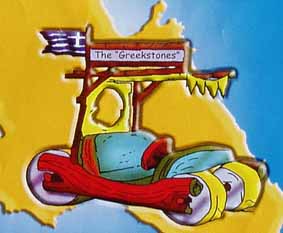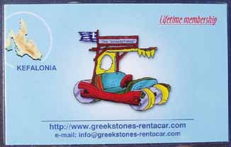 Before we went on holiday we had a look around on the internet to see what various car hire places were offering. We were attracted to Greekstones partly due to the obvious sense of fun and the pun on the Flintstones, but also due to their competitive rates and great terms. One of the things you want to be sure about when hiring a car is that you get C.D.W. (Collision Damage Waver), this was part of the Greekstones deal, but they went further and also offered F.D.W. (Full Damage Waver) which means that you're also insured for the excess liability on the C.D.W. - this is well worth having. You can also have P.A.I. (Personal Accident Insurance).