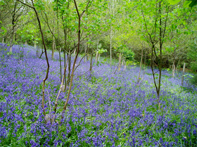 We visited Standen in May 2004. A splendid family house decorated with William Morris fabrics, carpets and wallpapers. It has a beautiful hillside garden and woodland with bluebells. It is on the West Hoathly Road near East Grinstead in West Sussex.